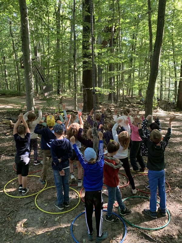 Mit voller Fahrt zum Schatz! Unser Sozialkompetenztraining im Abenteuerpark war ein echtes Highlight: In kleinen und großen Gruppen flitzten die Kinder unter einem schwingenden Seil hindurch, meisterten gemeinsam den kniffligen Buchstaben- und Zahlenweg, schwangen mutig an Seilen und halfen durch vereinte Kraft einem Kind, sich über eine „Schlucht“ zu hangeln und den Schlüssel für das Team zu erbeuten. Mit Teamgeist, Abenteuerlust und jeder Menge Spaß segelten sie Schritt für Schritt ihrem Schatz entgegen.